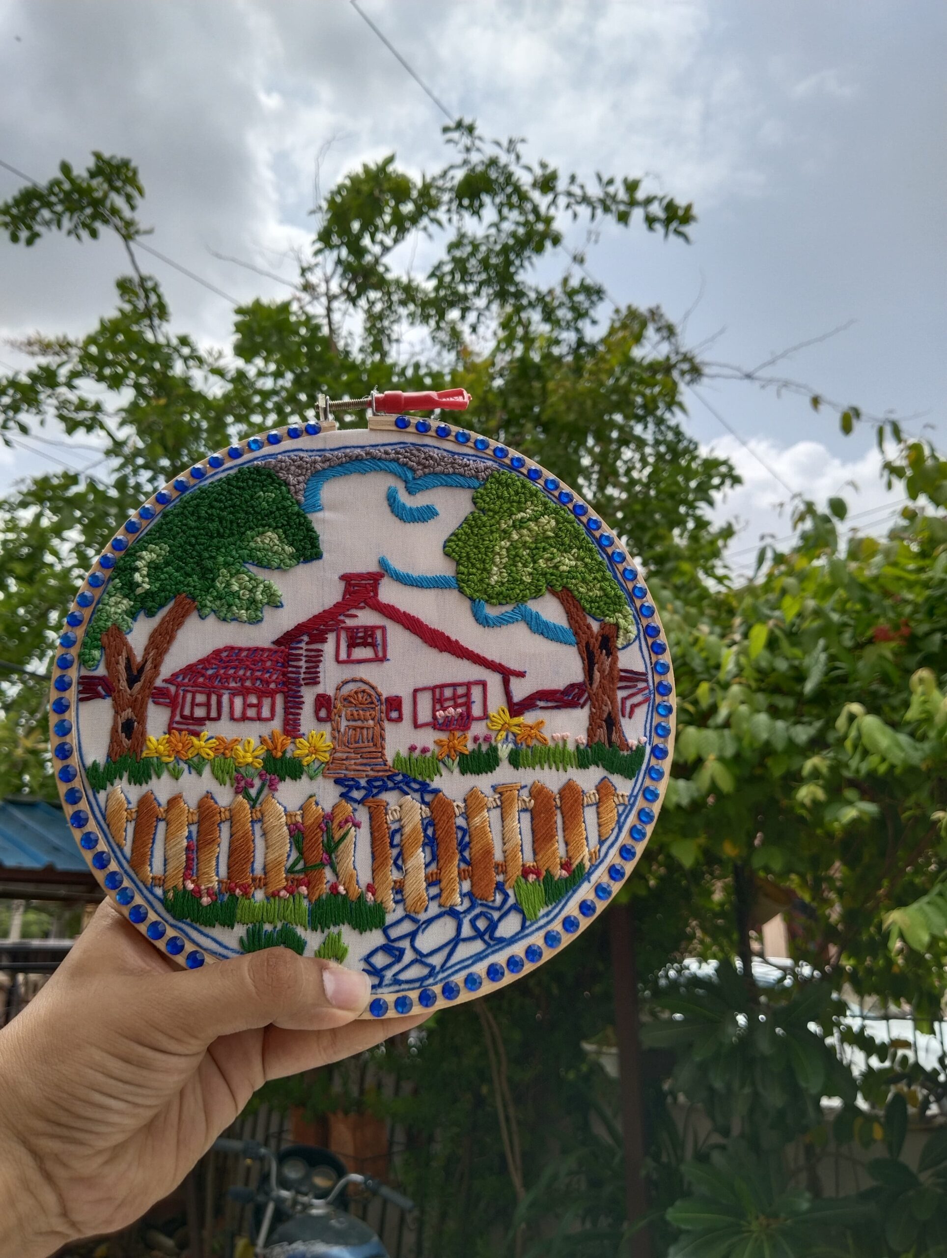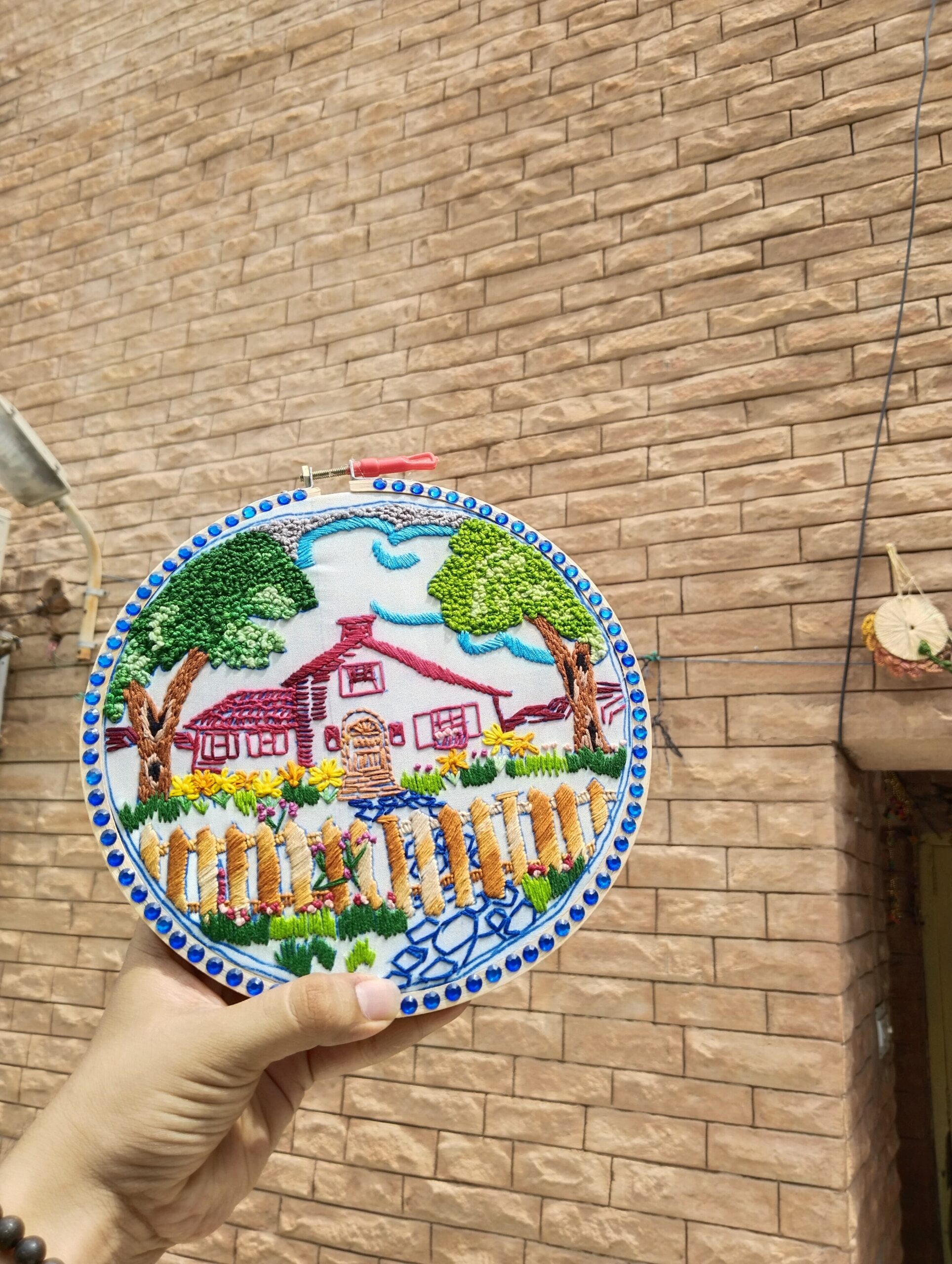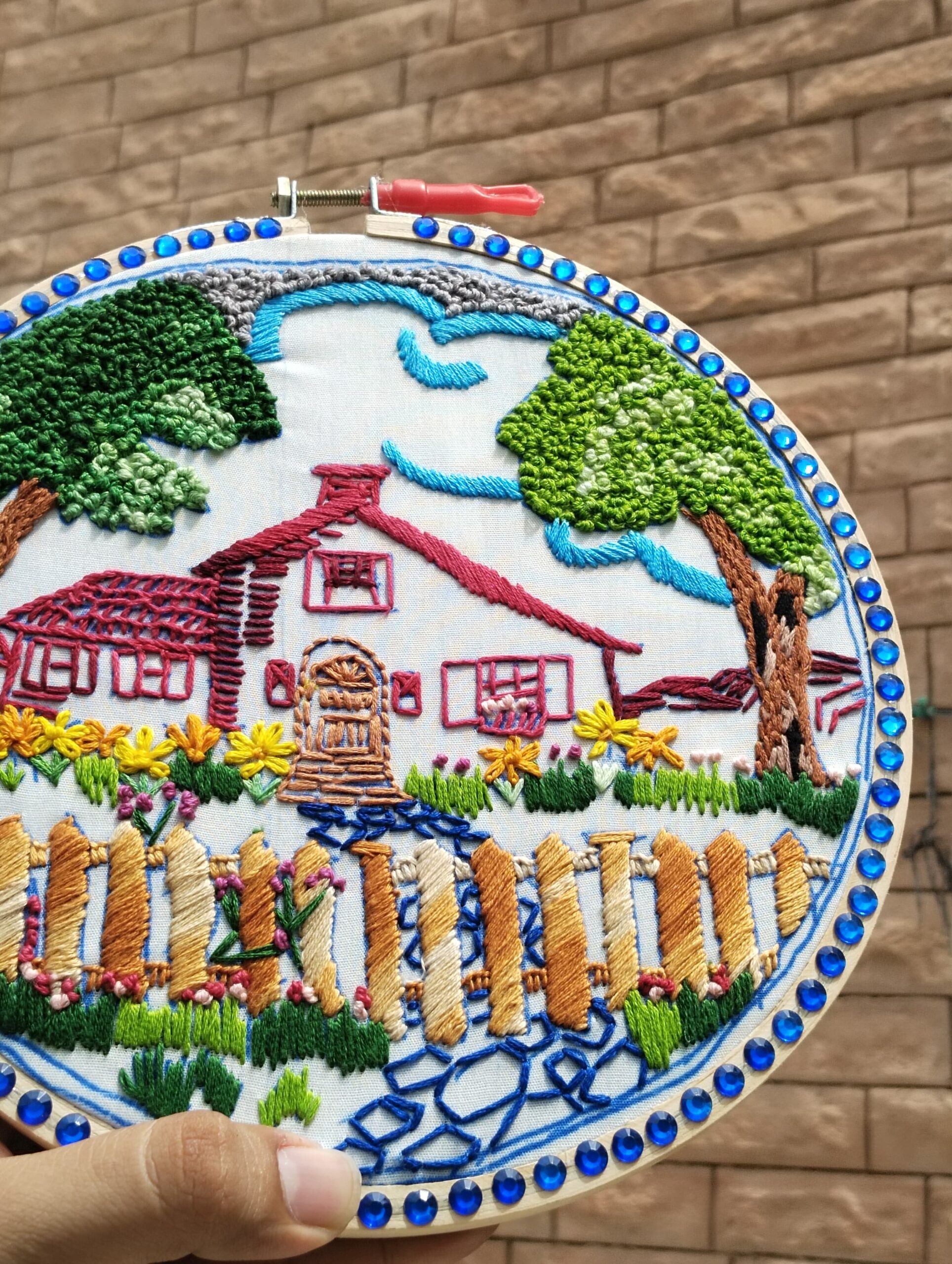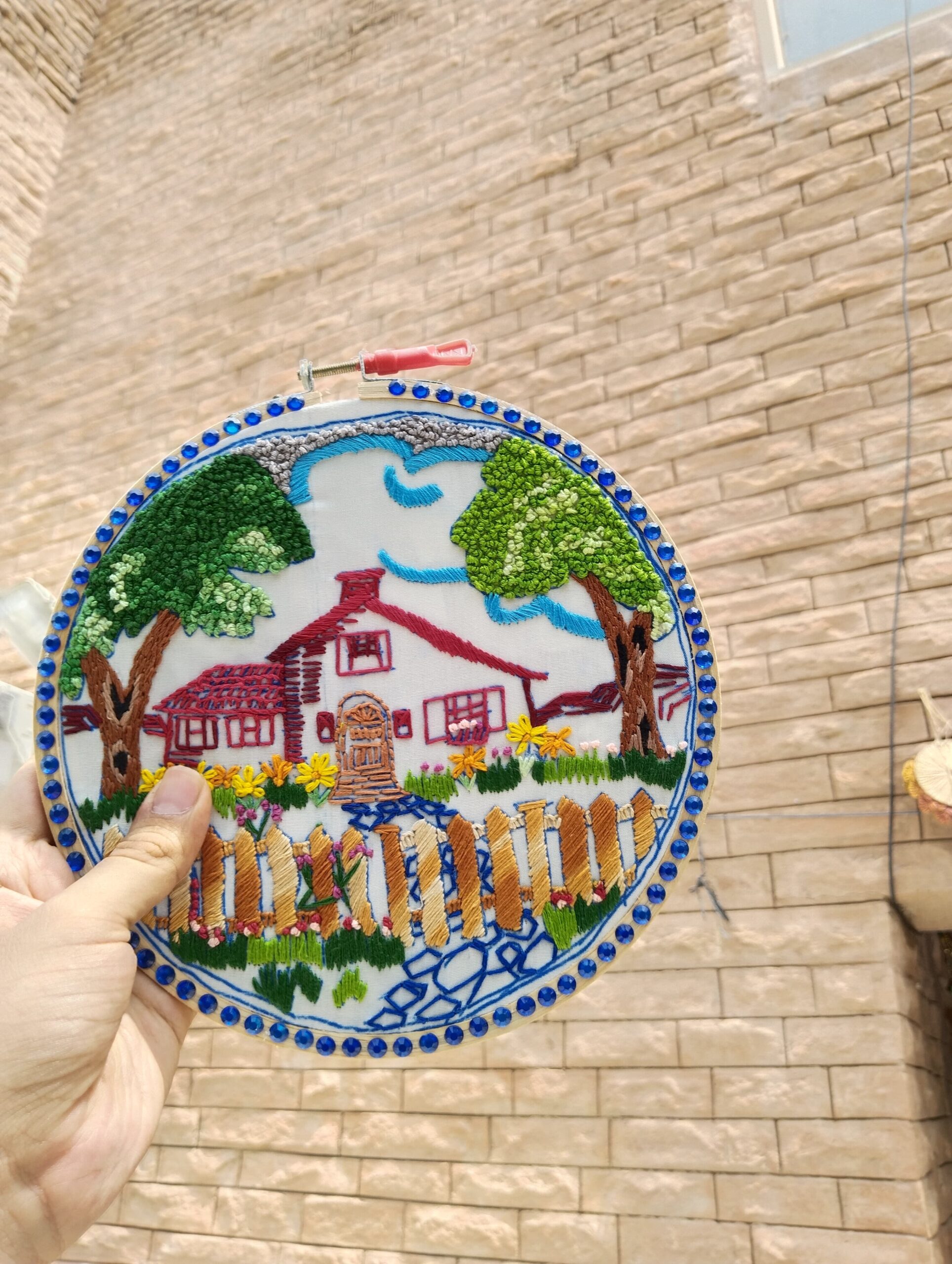 Step into the peaceful serenity of rural life with our Countryside Charm Embroidered Hoop Art π§΅π³. This exquisite handmade piece features a detailed thread painting of a quaint house, surrounded by lush greenery, cheerful flowers, and a rustic wooden fence. The vibrant colors and 3D embroidery techniques make this hoop a delightful visual treat and a conversation starter! π