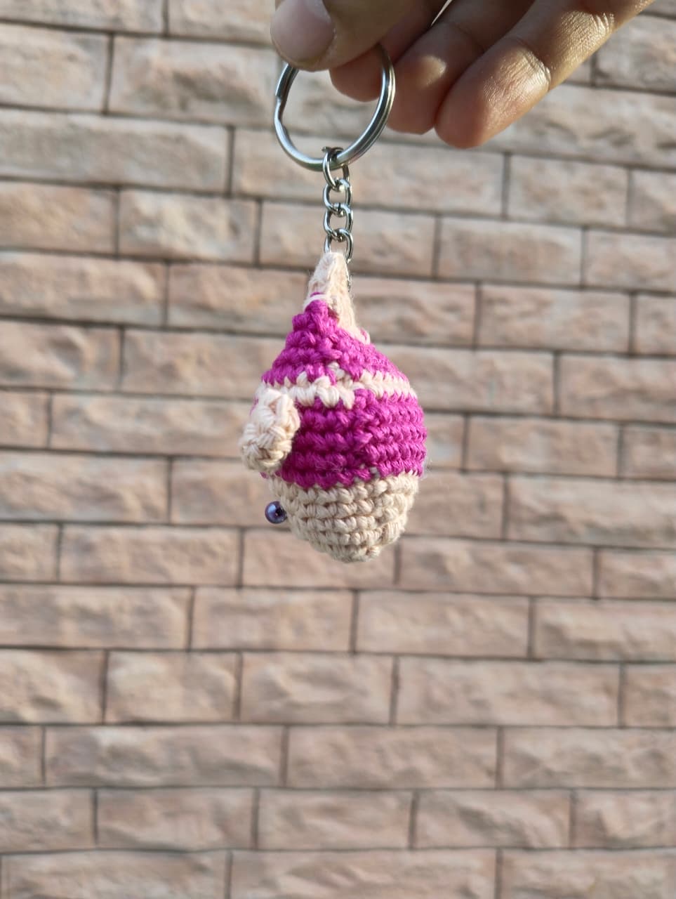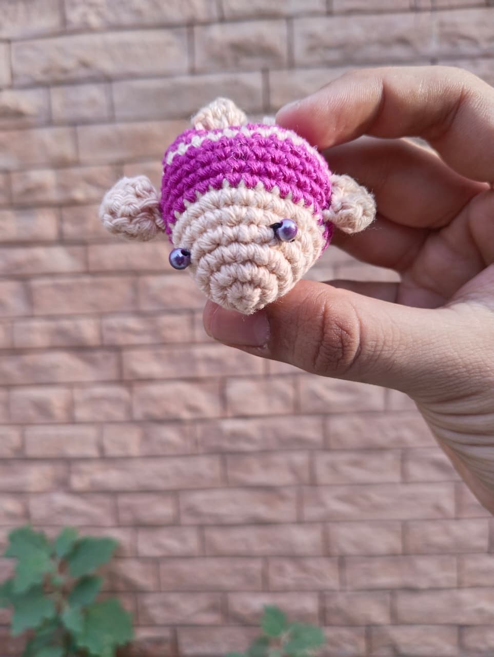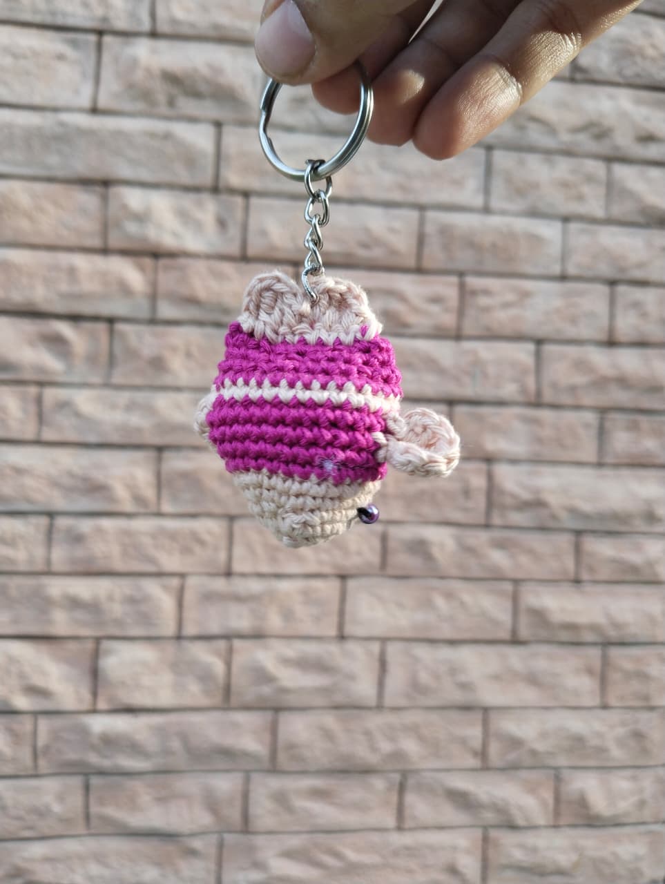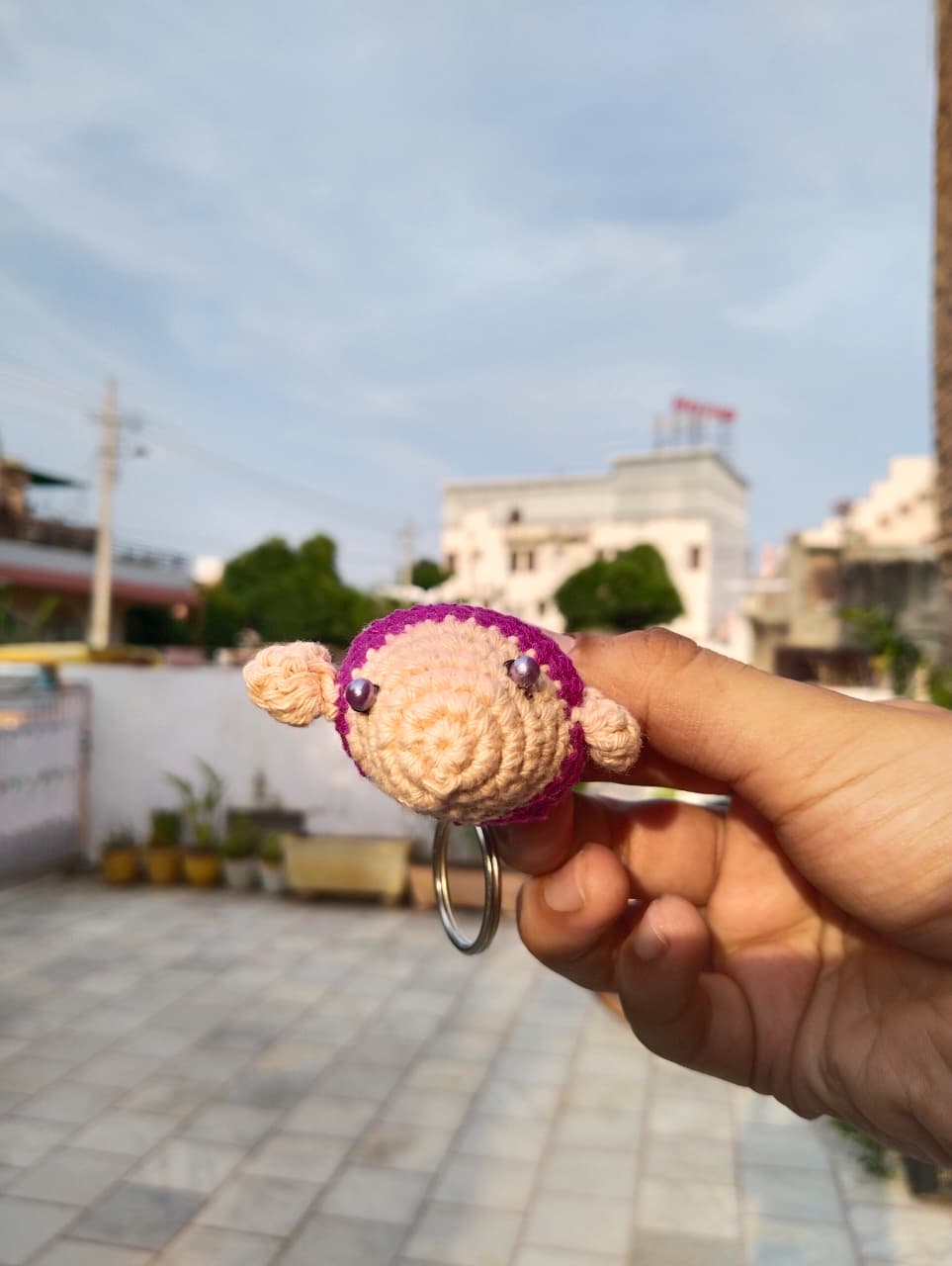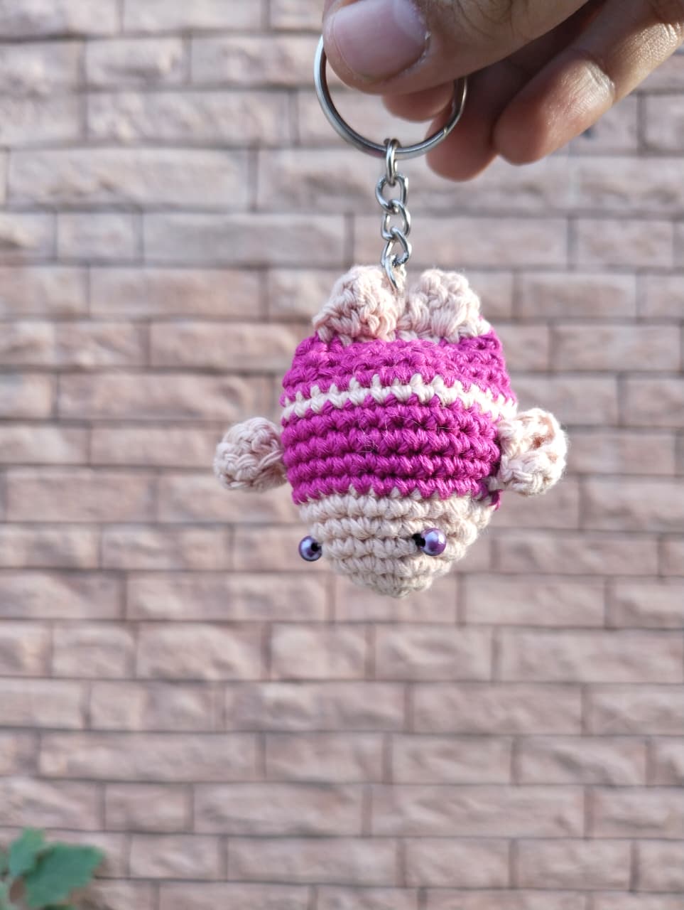 - Material: High-quality cotton blend yarn + sturdy metal keyring + beaded eyes