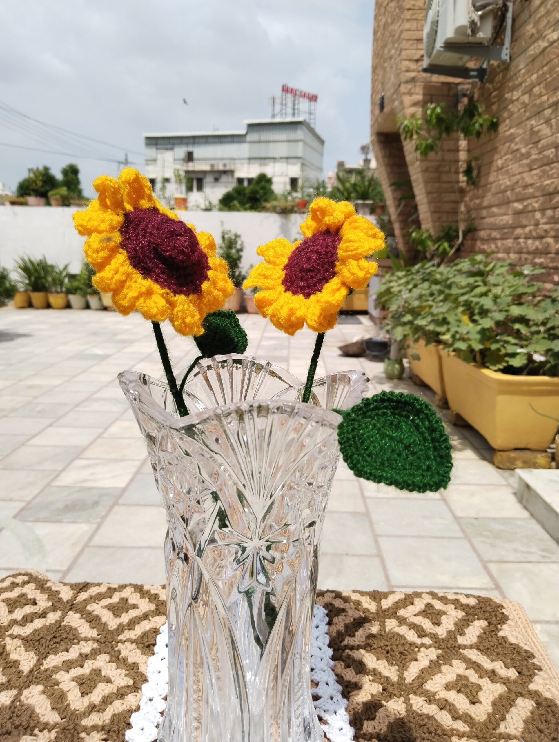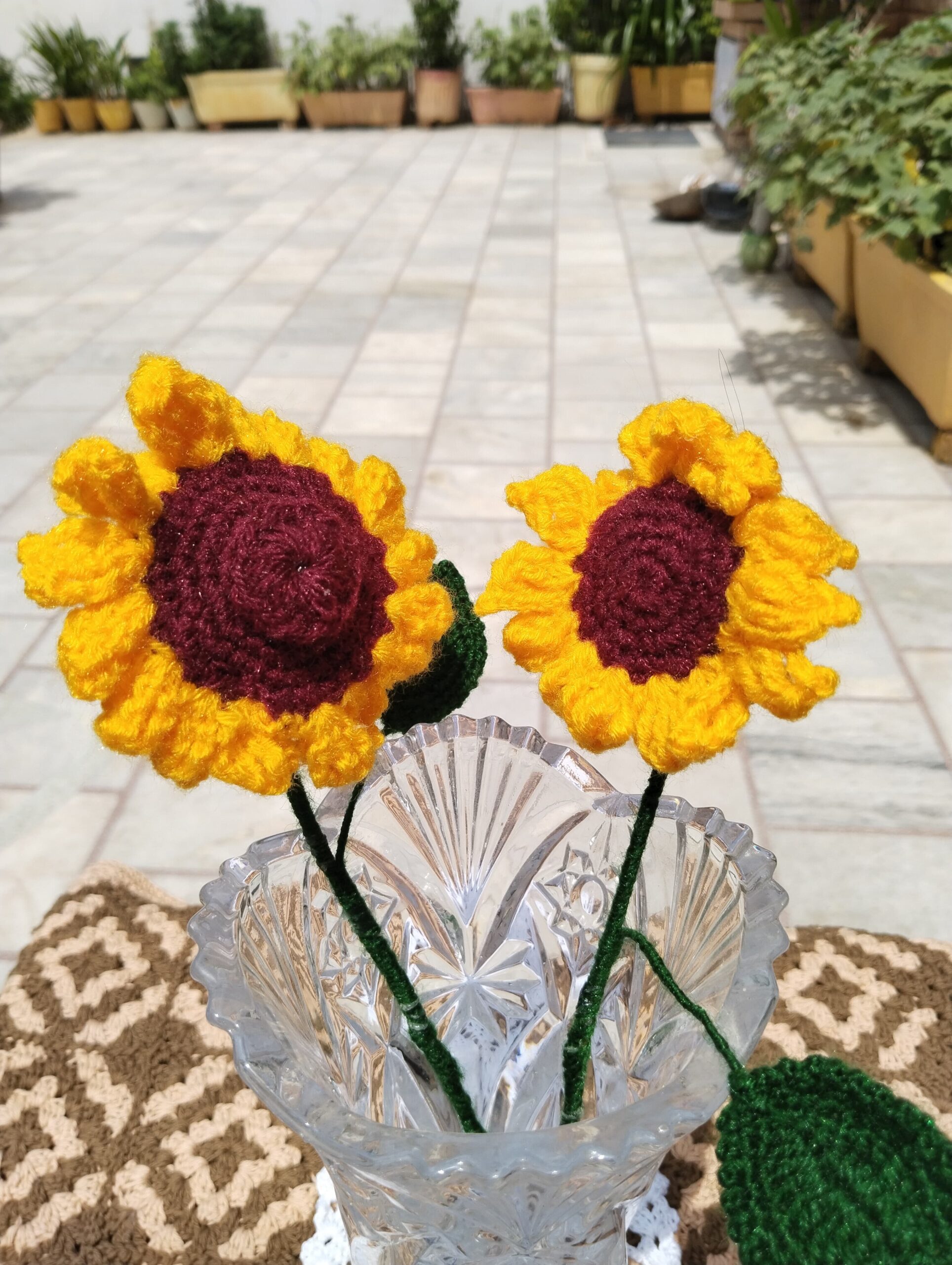 🔹 Contents: Set of 2 Crochet Sunflowers