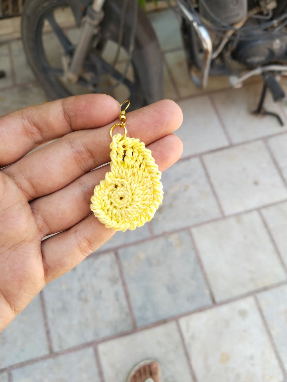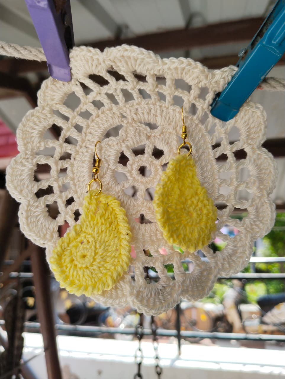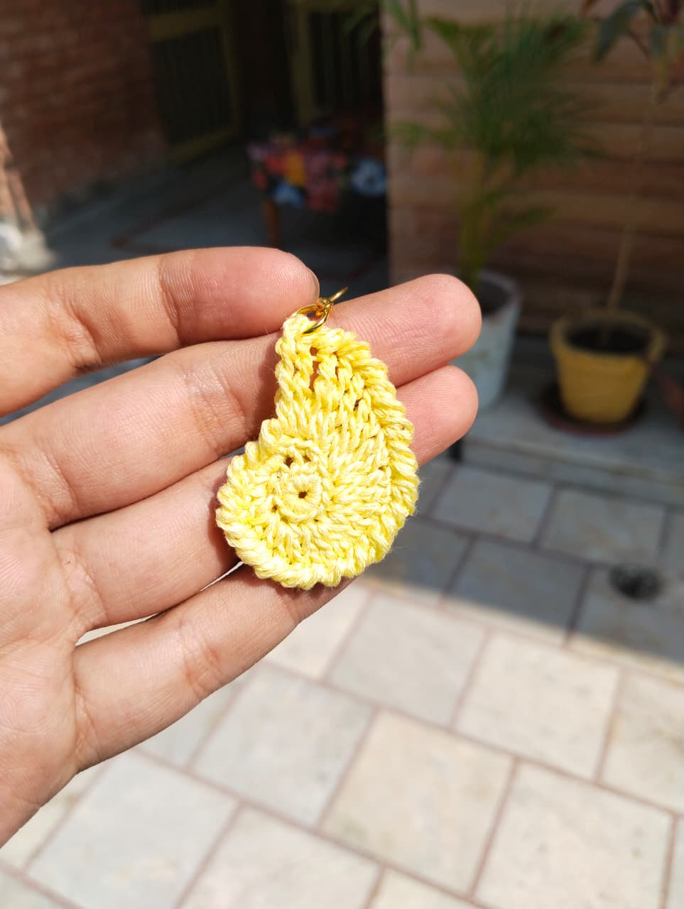 Fresh, fun, and full of charm — our Lemon Spiral Earrings 🍋✨ are handcrafted with crochet in a vibrant yellow shade, shaped into a playful spiral/teardrop design 🌼. Their lightweight style makes them perfect for daily wear while adding a splash of sunshine to your outfit ☀️💛.