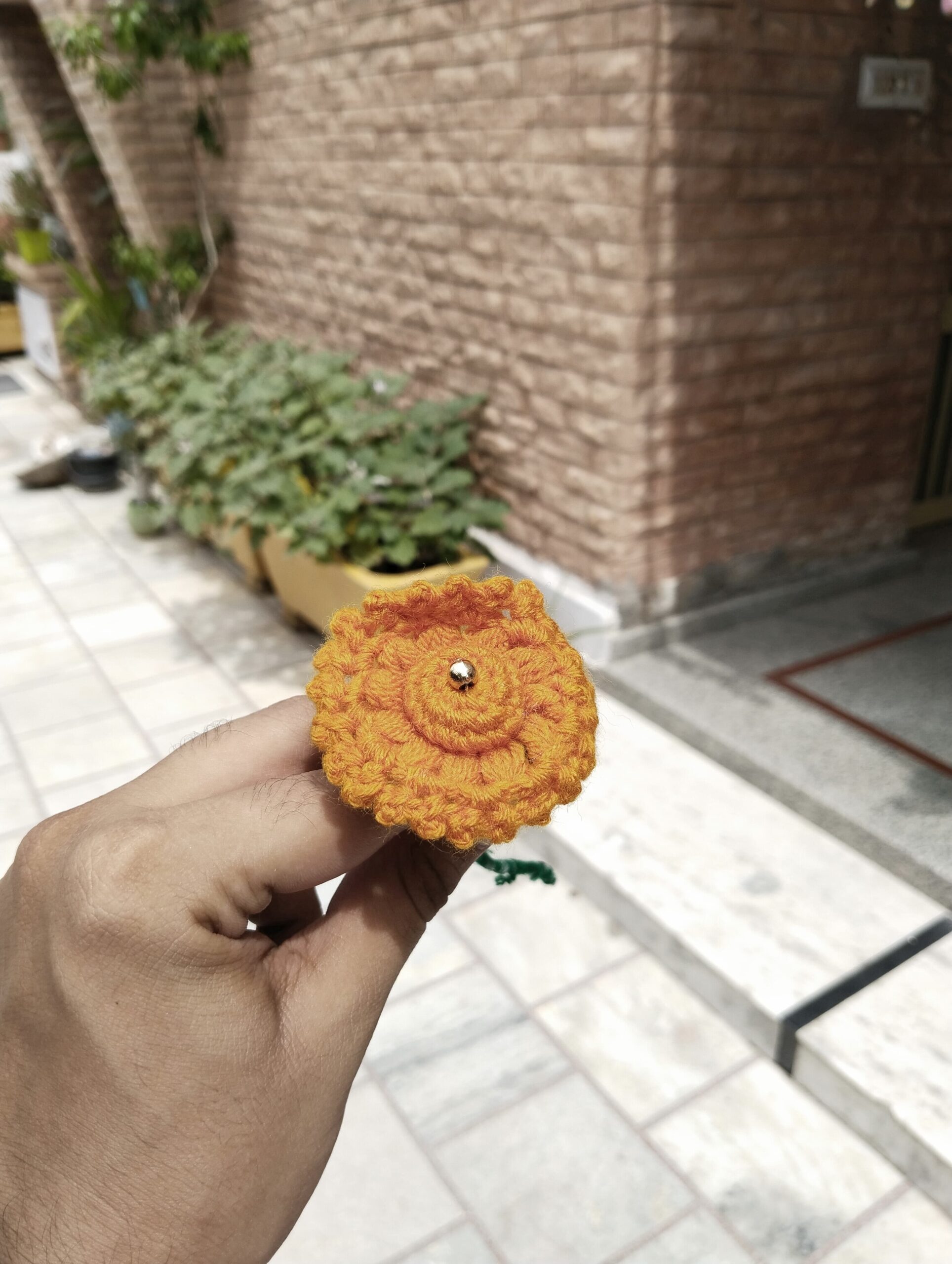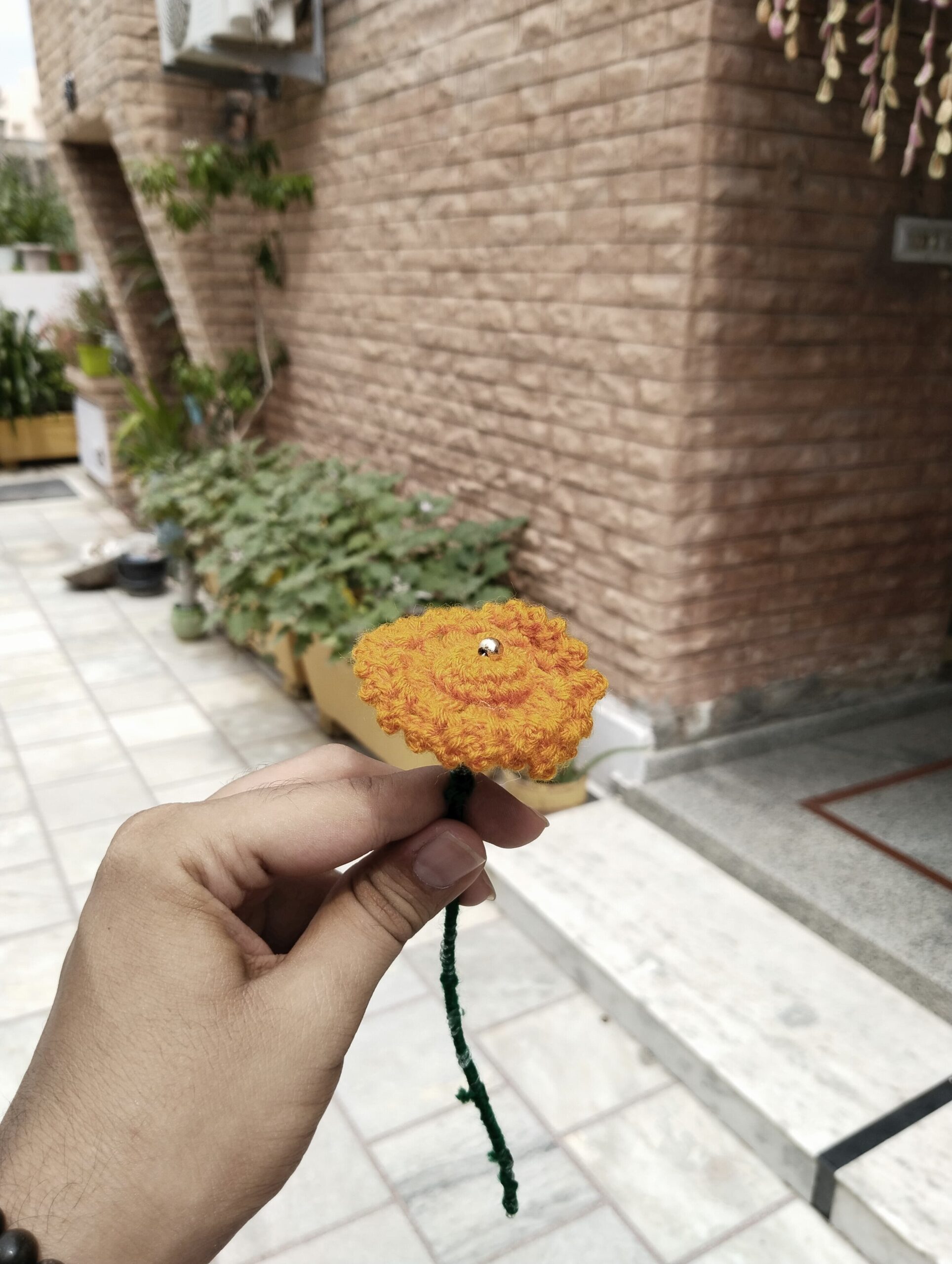 The Saffron Glow Crochet Floral Stems bring a warm, handcrafted vibe into your space with their rich marigold-inspired color. Lovingly crocheted in deep saffron-orange yarn with golden bead detailing at the center, these flowers are perfect for traditional festivals, home altar decorations, or aesthetic shelf styling.